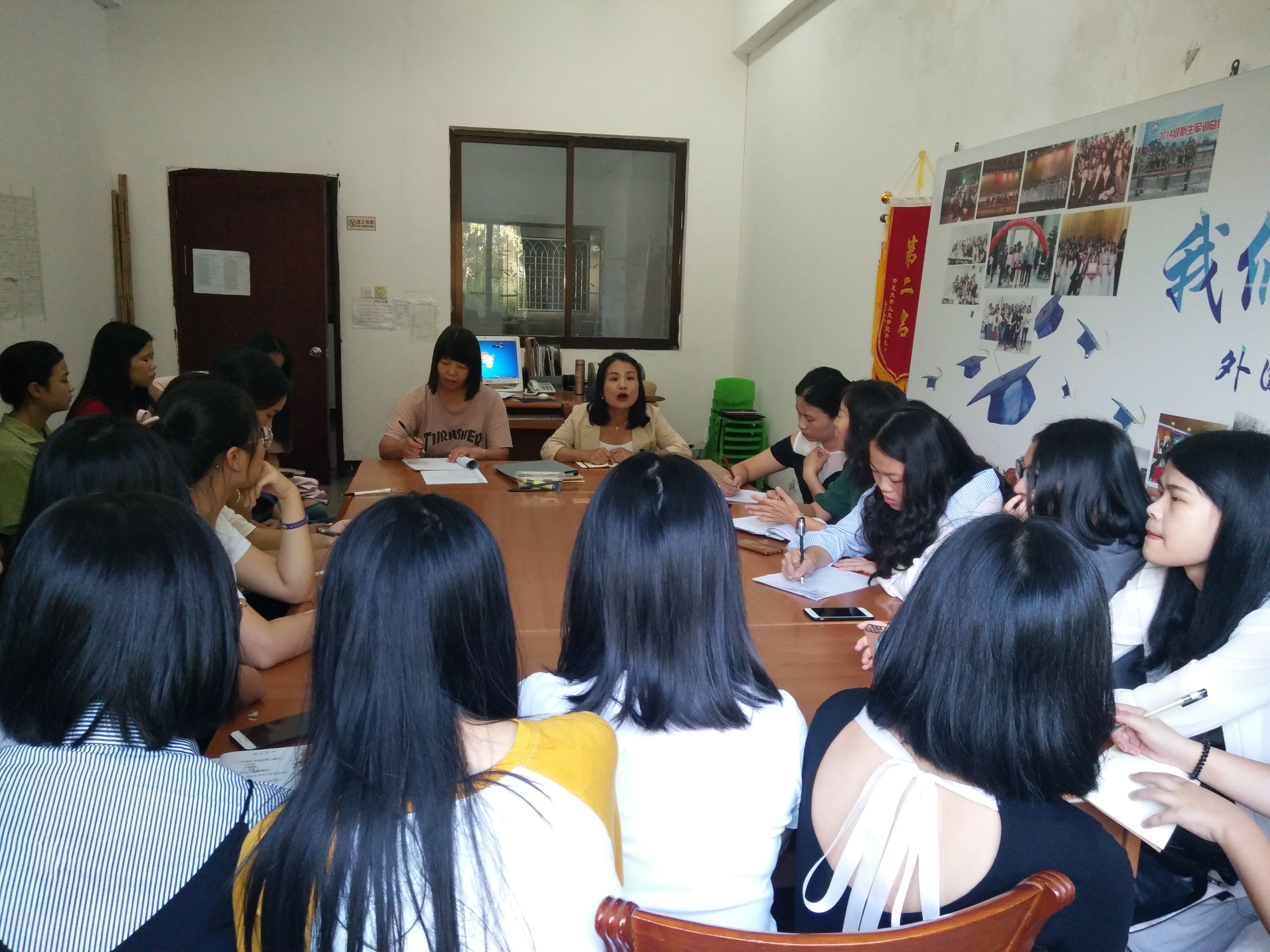 为切实做好2018级威廉希尔WilliamHill迎新工作,统筹安排各项迎新事宜,确保新生顺利入校, 9月10日星期一下午2:30学院员工工作领导小组主要负责人同院员工会与团委全体干部于普照楼英语系办公室召开18级新生迎新工作协调会。