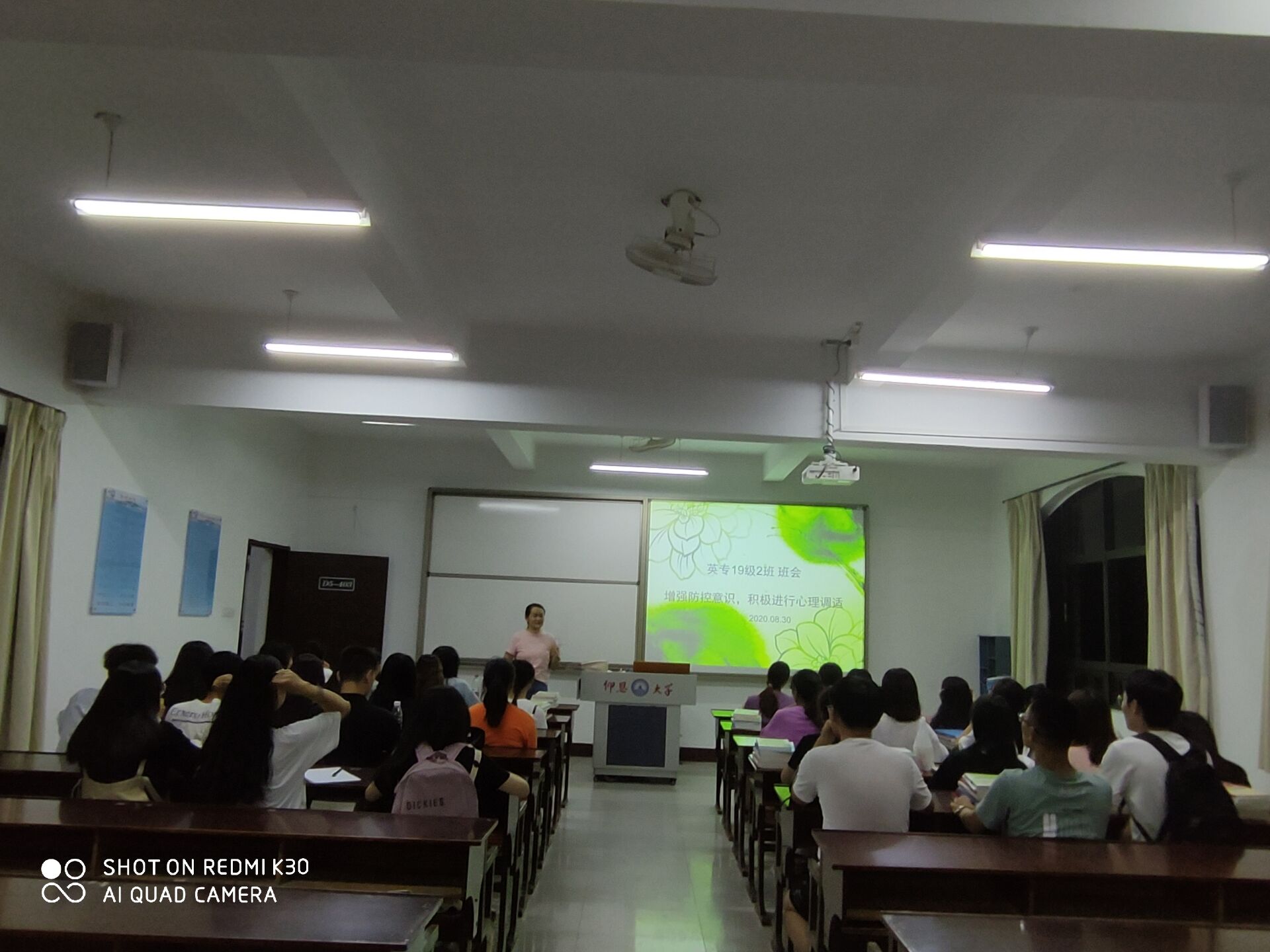 同一天晚上,18英语1班的全体同学相聚在了仰恩楼D4-405参加了新学期“开学第一课”。班会课上,班主任连毅卿老师第一次有关向同学们介绍了疫情以来老员工容易产生的心理健康问题以及作为老员工我们该如何去培养健康心态,如何去发泄负面情绪,以及学校对我们提供的心理咨询服务。老师同时也强调了特殊时期的特殊请假方式,疫情背景下启动线上请假销假的方式也更加方便了师生。
