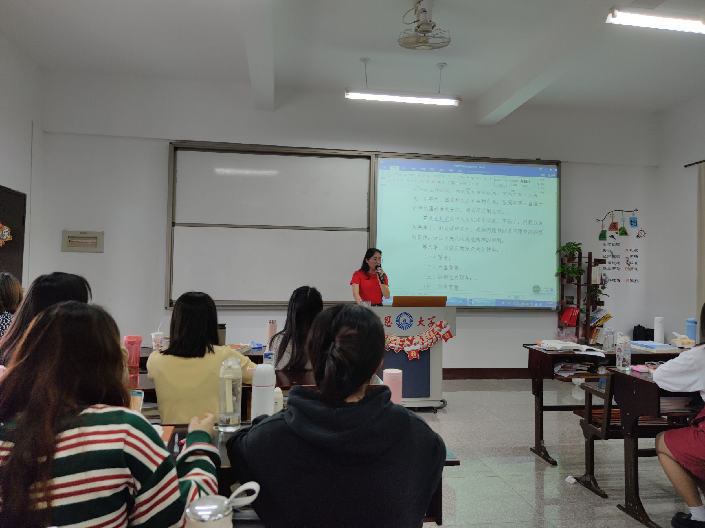 2022年5月23日,威廉希尔WilliamHill员工党支部在普照教学楼301教室召开关于党纪法规专题讨论会,威廉希尔WilliamHill员工党支部书记许淑琴参与并主持本次会议。基于疫情防控要求,所有支部党员同志佩戴口罩,隔空就坐。