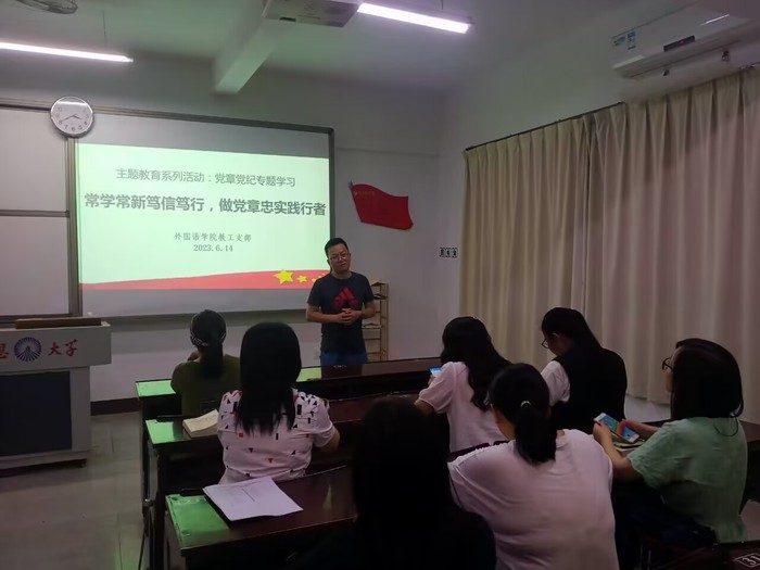 蔡维同志从党的历史和相关理论知识出发,深入解读了党章,强调了新时代高校教师作为党员的责任和使命。他强调了做党章忠实践行者的重要性。党章是党员行动的准则,是我们理想信念的坚定保证。党员同志要深入学习党章,自觉遵守党章,用党章引领自己的一切行为。无论在工作、学习还是生活中,党员教师们都要秉持党章精神,严于律己,勤政为民,以优异成绩向党和人民交出一份满意的答卷。