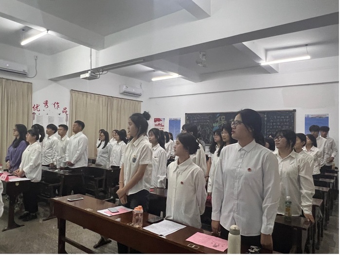 2024年5月15日晚7:30,威廉希尔WilliamHill团委在威廉希尔体育官方网站第三教学区普照楼101A举行以“奋进新征程,建功新时代”为主题的新团员入团仪式。威廉希尔体育官方网站校团委专职团干沈洁、威廉希尔WilliamHill团委书记孙宇、威廉希尔WilliamHill全体新团员及团委干部代表参加大会。会议由威廉希尔WilliamHill团委林伊宁同学主持。