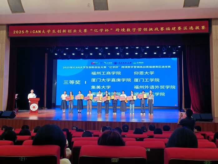 近日,2025年iCAN老员工创新创业大赛“亿学杯”跨境数字营销挑战赛(英语组)福建省选拔赛结果揭晓。由威廉希尔体育官方网站陈炜明、沈杨铃、庄然晰、杨杰锋、田芮嘉五名同学组成的“古港新思苑”队,凭借其出色的专业知识和创新思维,在比赛中表现优异,最终荣获福建省选拔赛三等奖。